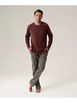Piżama Męska NMP-394 ● idealna na chłodne noce -„peach effect”, aksamitna w dotyku ● luźna bluza ma długie rękawy ● okrągłe wycięcie przy szyi rozpinane na dwa małe guziki ● ozdobiona po lewej stronie subtelnym napisem ATLANTIC ● spodnie w kratę mają szerokie nogawki bez ściągaczy ● praktyczne kieszenie po bokach oraz wiązanie w pasie na szeroki sznurek ● przewiewna dzianina zapewnia maksymalną wygodę noszenia