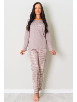 Piżama Damska Only ● koszulka w odcieniu beżu świetnie współgra ze spodniami w podobnych odcieniach ● z nadrukiem z delikatnym napisem ● bluzka ma długi rękaw oraz okrągły dekolt, który zwiększa komfort noszenia ● wygodne długie spodnie z gumą, w delikatny różowo-beżowy wzorek ● całość została uzupełniona delikatną kokardką ● z najlepszej jakości 100% bawełny certyfikowanej ● bawełna zapewnia maksymalną wentylację, a także pozwala utrzymać ciepło ● miła w dotyku, doskonale dopasowuje się do ciała ● wysoka wytrzymałość na spieranie ● gwarancja komfortu podczas snu ● zestaw doskonały na jesienne wieczory jak i na prezent
