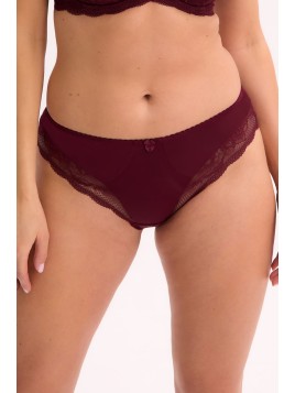 Figi Veronika GFP 931 Chianti ● pełne, w kolorze bordowym ● łączące elegancką koronkę elastyczną z funkcjonalną mikrofibrą ● delikatne tiulowe boki dodają lekkości ● dwustronna koronka na nogawkach podkreśla subtelny charakter bielizny ● gładki tył oraz bawełniany klinek zapewniają wygodę i komfort noszenia na co dzień