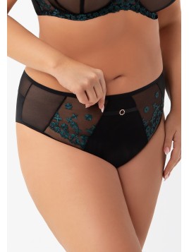 Figi Brazyliany Ottavia K949 Czarny ● średni stan ● odsłaniają i podkreślają pośladki ● wykonane z tiulu elastycznego ● na przodzie wstawki z haftu podszytego tiulem stabilnym ● tył z tiulu elastycznego wykończony na gładko ● nie odznaczają się pod ubraniem ● metalowe elementy w kolorze różowego złota (nie zawierają niklu) ● bawełniany kroczek dla zapewnienia komfortu