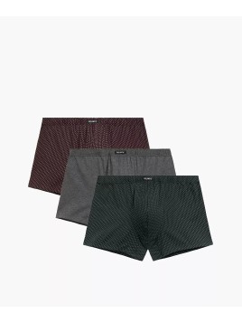 Bokserki Męskie 3MH-218 ● o klasycznym kroju ● dwie w drobny, geometryczny wzór, jedna gładka, zapakowane w trzypaku ● miękka, nieuciskająca guma wewnętrzna z logo Atlantic ● posiadają profilujące szwy, dzięki czemu idealnie dopasowują się do ciała ● płaskie szwy zapewniają wygodę i komfort ● wykonane z dzianiny cotton stretch, wytrzymałej w użytkowaniu i odpornej na wysokie temperatury ● dzianina ma zdolność wchłaniania wody, zapobiega dyskomfortowi jakim jest pocenie się ciała ● zapakowane w eleganckie pudełko ● sprzedaż całym opakowaniem - 3 sztuki